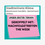 - 22.01.2026 – Stadtteilnetz Klima / Nachfolgetreffen The Week„ZU OFT FÜHLT SICH DIE KLIMAKRISE ABSTRAKT UND ÜBERWÄLTIGEND AN. DIE DREITEILIGE FILMREIHE THE WEEK WILL DAS ÄNDERN.” STATTGEFUNDEN HAT SIE IM SOMMER 2025 UND SUCHT NUN Mitgestalterinnen und Mitgestalter! Deshalb lädt die Quartierskoordination der Freiwilligen-Agentur zu folgender Veranstaltung ein: Was sind Stadtteilnetze? Stadtteilnetze sind Zusammenschlüsse von engagierten Menschen, Gruppen oder Organisationene, die sich austauschen, … Weiterlesen